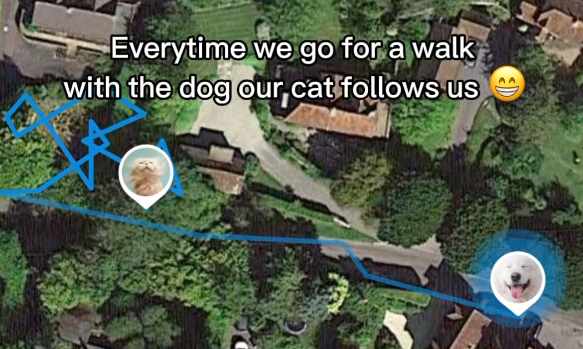 Cats and dogs are often seen as sworn enemies, but despite their hilarious antics and infamous squabbles, they can sometimes surprise us by becoming the best of frenemies. One pet pair perfectly illustrated this in a video shared by their owner. Using GPS trackers by Tractive, the pet owner traced the live location of both pets to show how his cat secretly follows him and the dog every time they go for a walk.